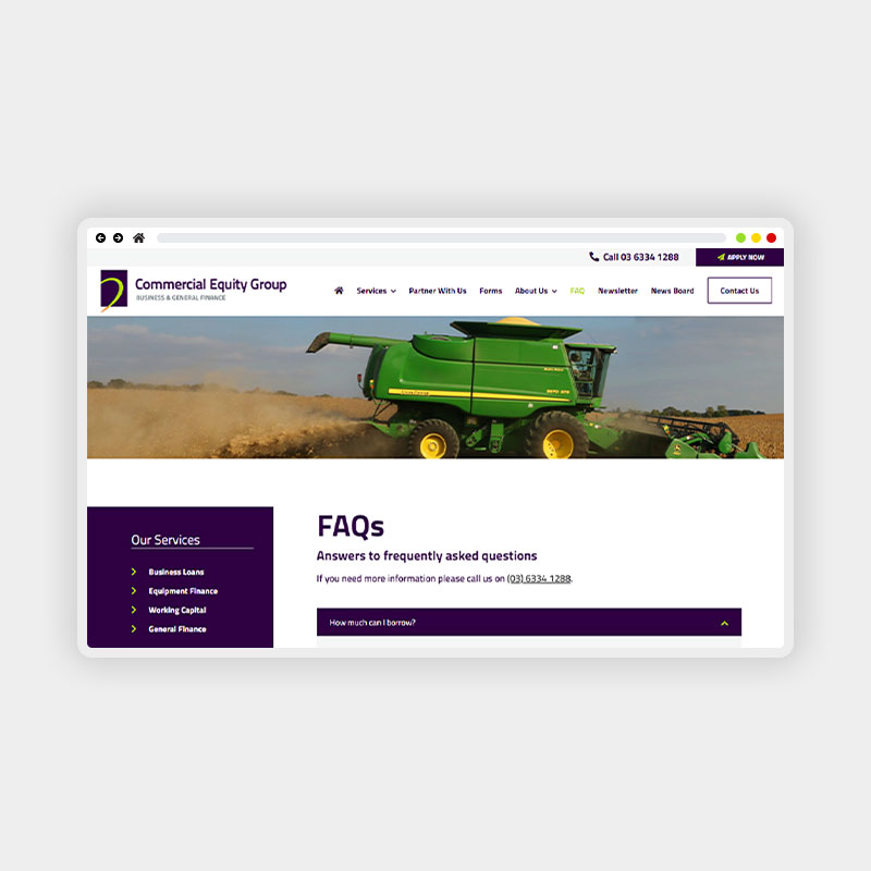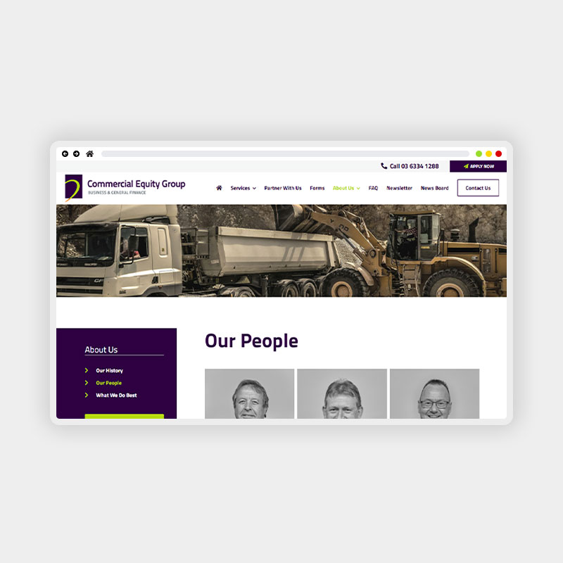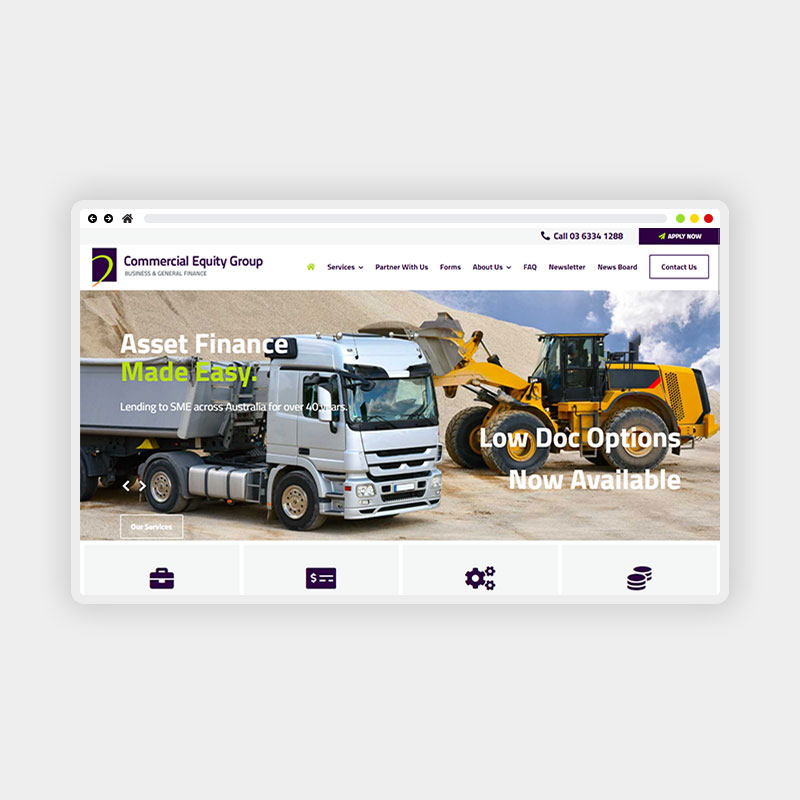 As one of the leading non-bank lenders in Australia and an existing client of zest, Commercial Equity Group sought a redesign of their old website and we couldn't wait to get designing! The result was a clean mobile-friendly site with an overall stronger presentation of their brand and also incorporated tweaks to their logo for a more contemporary look.